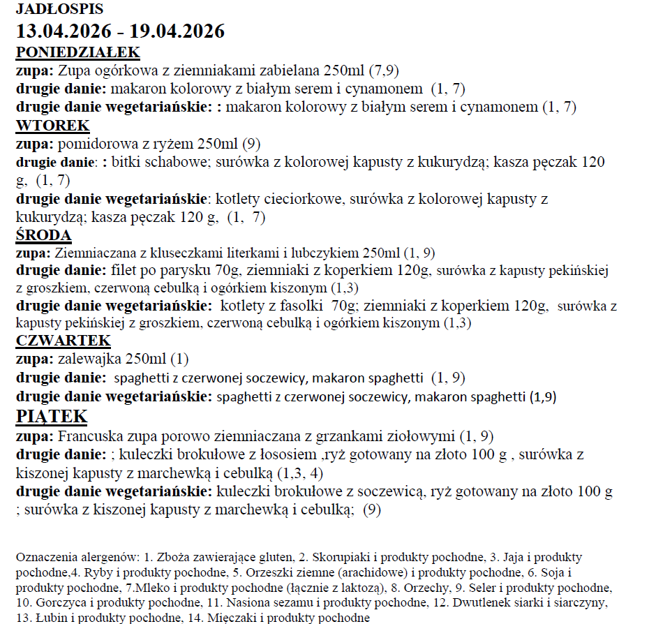 W razie nieobecności dziecka w szkole w dniu, kiedy obiad został opłacony, prosimy o niezwłoczne powiadomienie sekretariatu szkoły - nie później niż do godziny 8:00.
