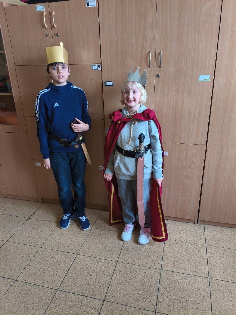 Urozmaicić historię w klasie 4. Na historii w naszej klasie czasem zjawia się król Bolesława Chrobry, a nawet może się spotkać ze swoim potomkiem Kazimierzem Wielkim. To dlatego żebyśmy lepiej zapamiętali ich dokonania dla Polski. Noszenie korony i miecza przy pasie okazało się kłopotliwe. Wszyscy w klasie z zaciekawieniem obserwowali kolegów w roli królów.