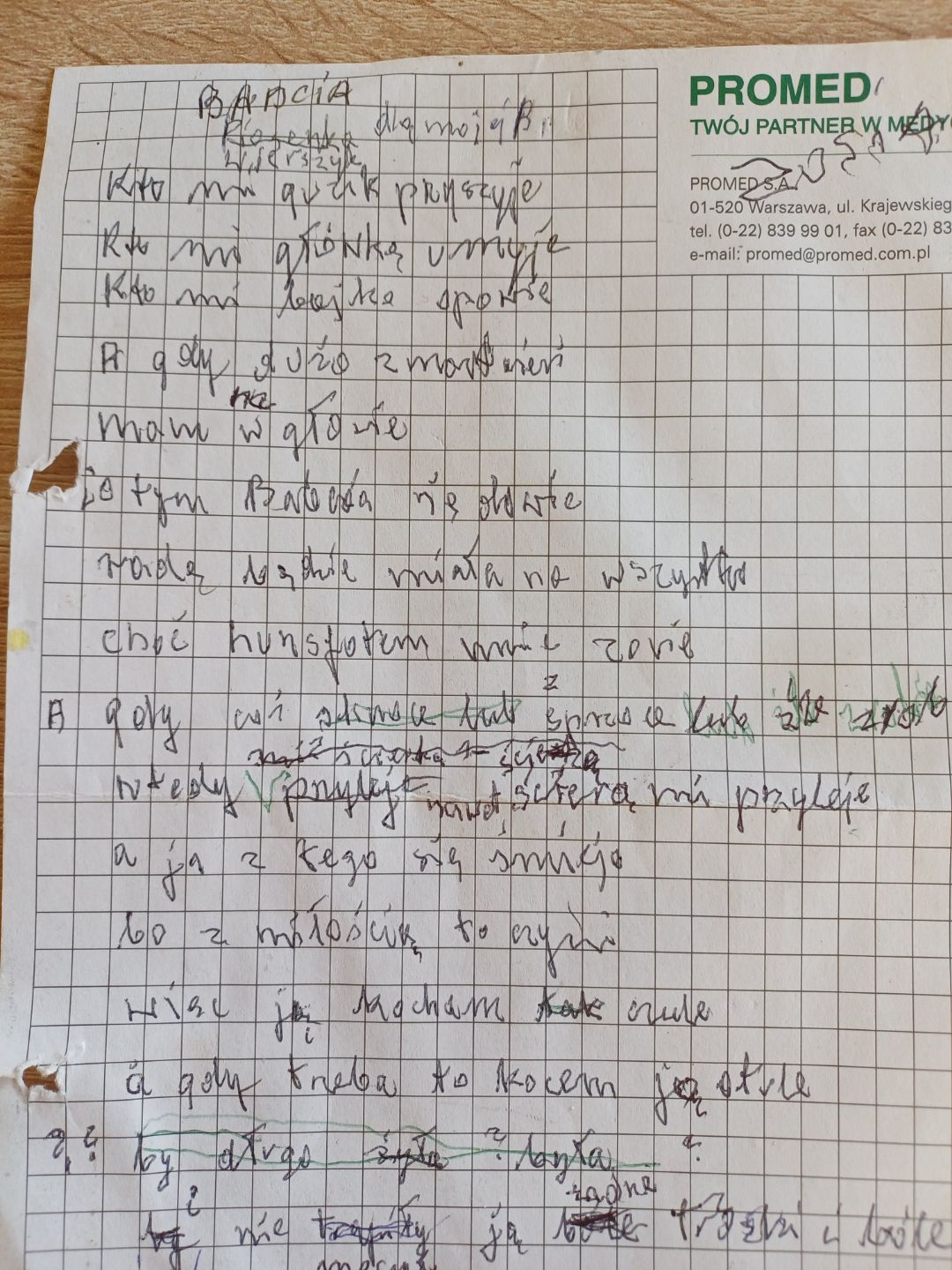 Z okazji nadchodzącego święta wszystkich babć i dziadków uczniowie klasy 5c mieli ogromną przyjemność reprezentowania szkoły podczas bardzo miłego spotkania z Seniorami w Domu Pomocy Społecznej przy ul. Krzemienieckiej 7/9 w Łodzi. Reprezentanci zaśpiewali piosenki, rozdali słodkości, przygotowane własnoręcznie mydełka oraz przekazali dary od całej społeczności szkolnej, których ilość wzruszyła wszystkich. Dziękujemy wszystkim za otwarte serca, dobroć i wsparcie, które ogrzało serca wszystkich w te mroźne dni. Pięknym podsumowaniem spotkania były autorskie wiersze Pana Jurka, który stworzył wiersze, chcąc jak najlepiej nas ugościć. Efekt przerósł oczekiwania, a wzruszeniom nie było końca.