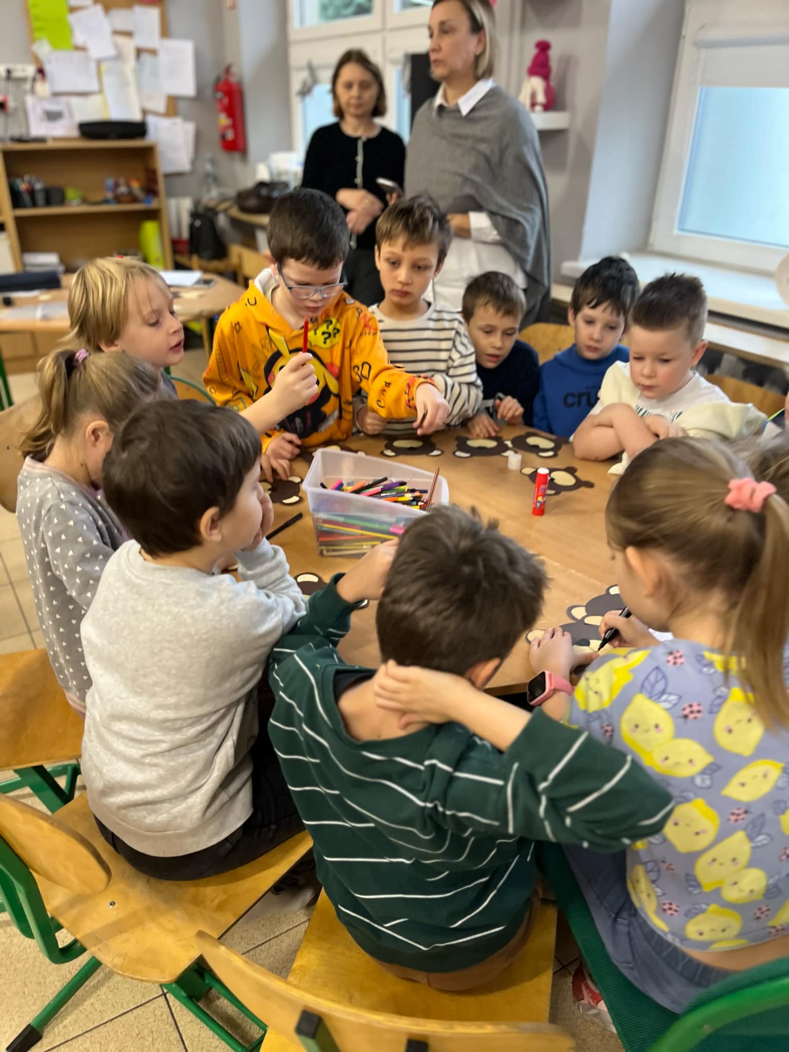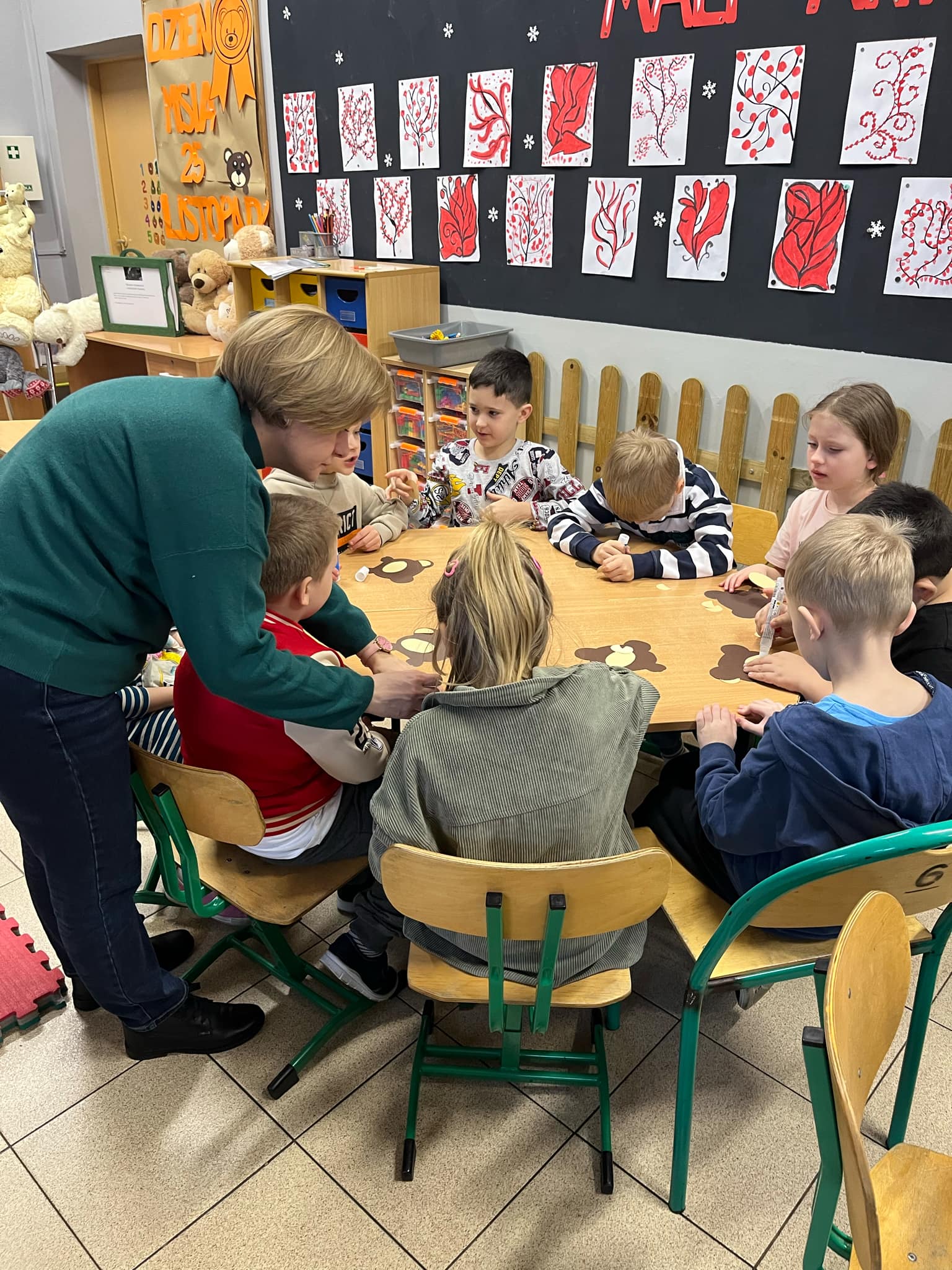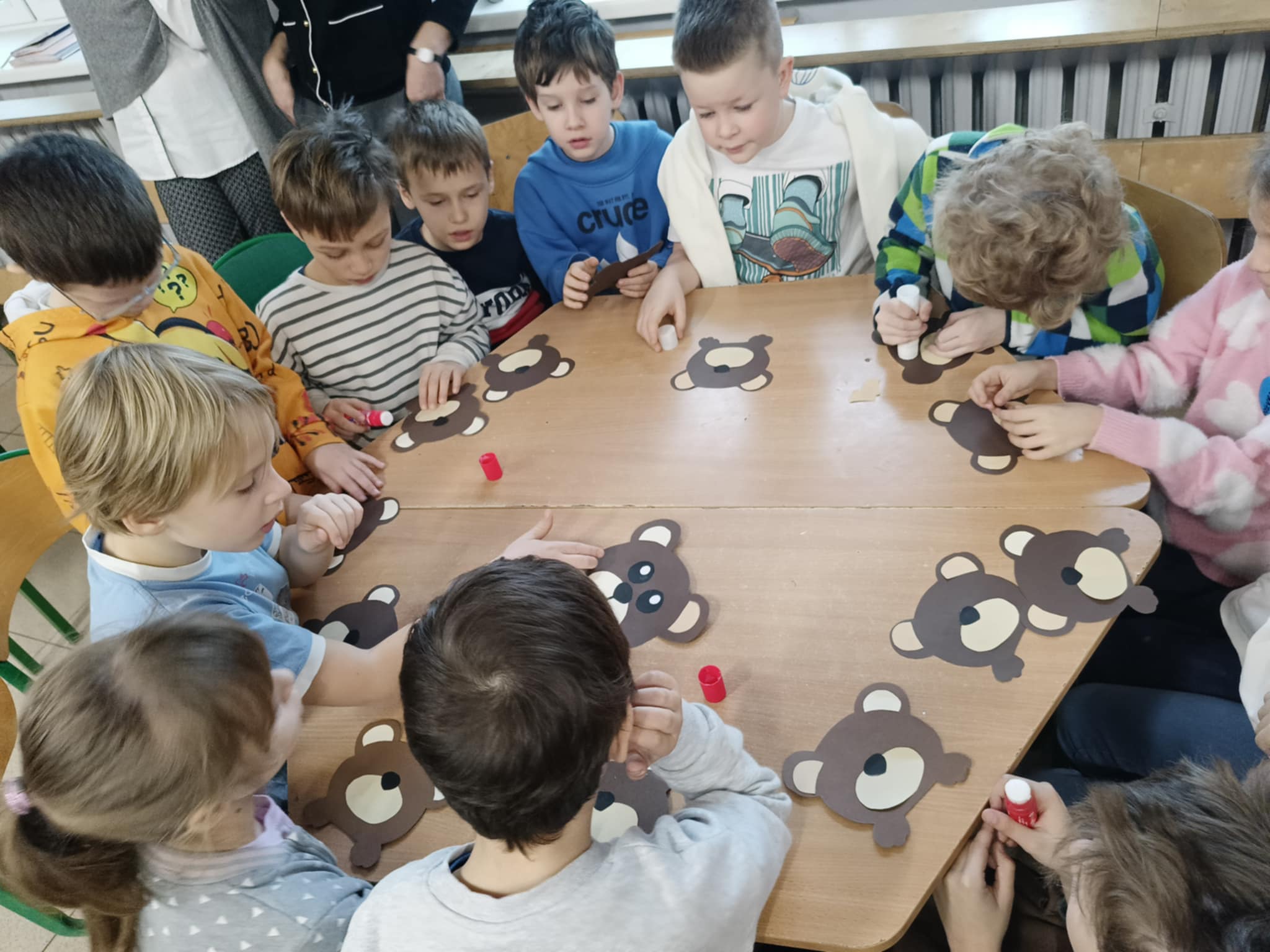 We wtorek 25 listopada biblioteka oraz świetlica szkolna zorganizowała dla uczniów klas I zajęcia czytelniczo-plastyczne z okazji Światowego Dnia Pluszowego Misia. Najmłodsi wysłuchali opowieści o niedźwiedziach brunatnych pt. “Misiowe wiadomości” prezentowanej za pomocą teatrzyku kamishibai. Dzieci poznały historię pluszowej maskotki, sprawdzili swoje wiadomości o niedźwiedziach podczas krótkiego testu wiedzy, wysłuchali wierszy oraz piosenek o misiach. Na zakończenie wykonały misiowe opaski na głowę.