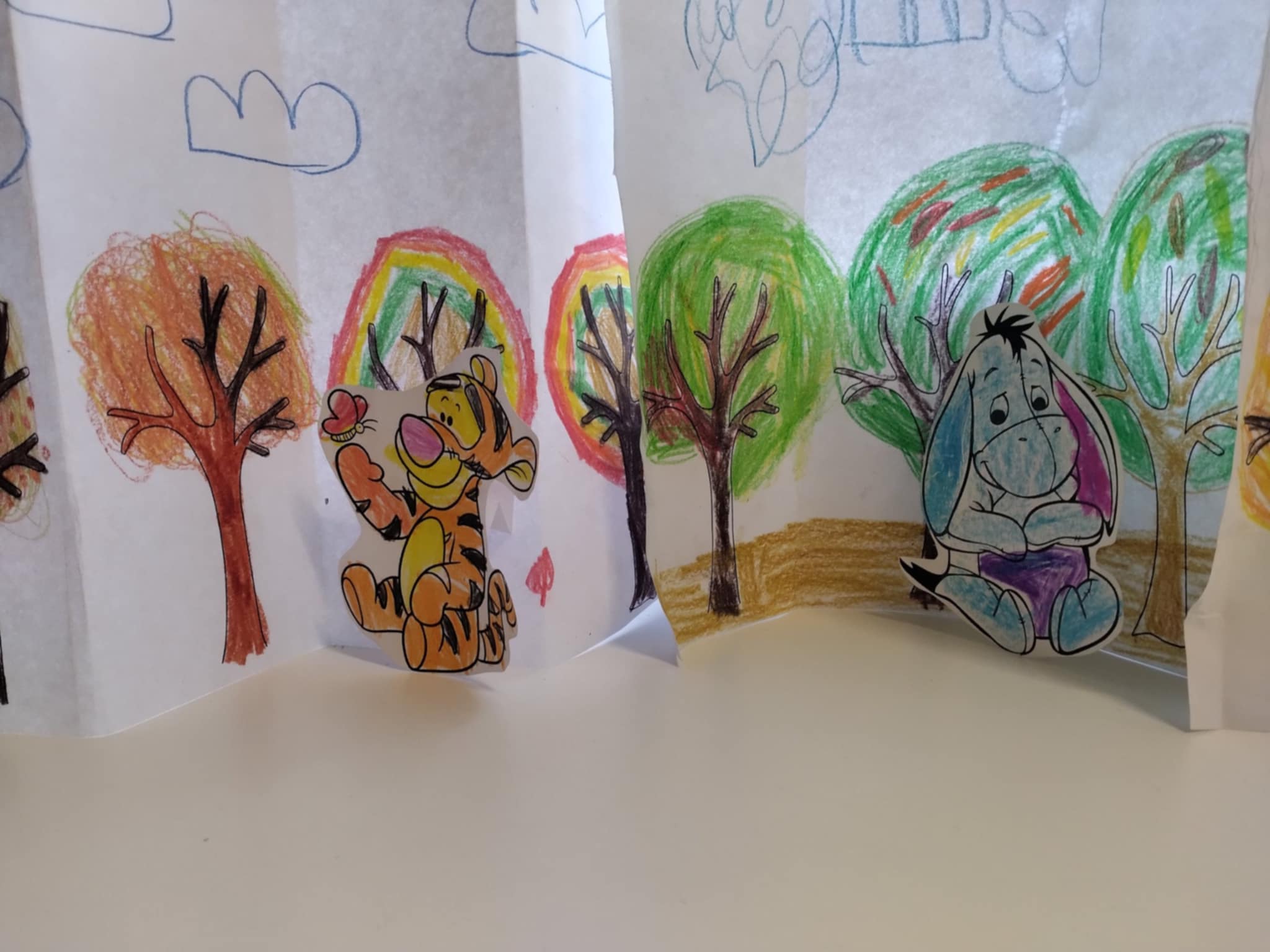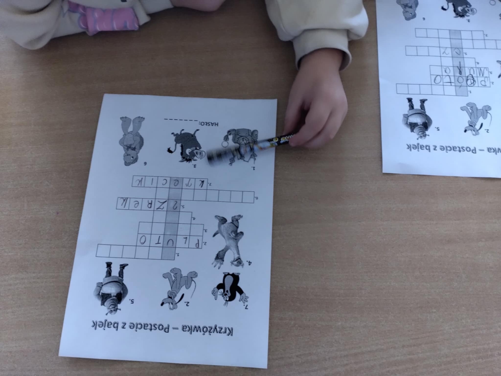 Uczniowie odwiedzający podczas przerw bibliotekę szkolną, tego dnia, mieli okazję uczestniczyć w zabawach związanych z bajkami. Tworzyliśmy Stumilowy las, w którym mieszkają bohaterowie Kubusia Puchatka, rozwiązywaliśmy bajkowe krzyżówki i wykreślanki z bajkowymi bohaterami. Nie zabrakło również wspólnego czytania bajek.