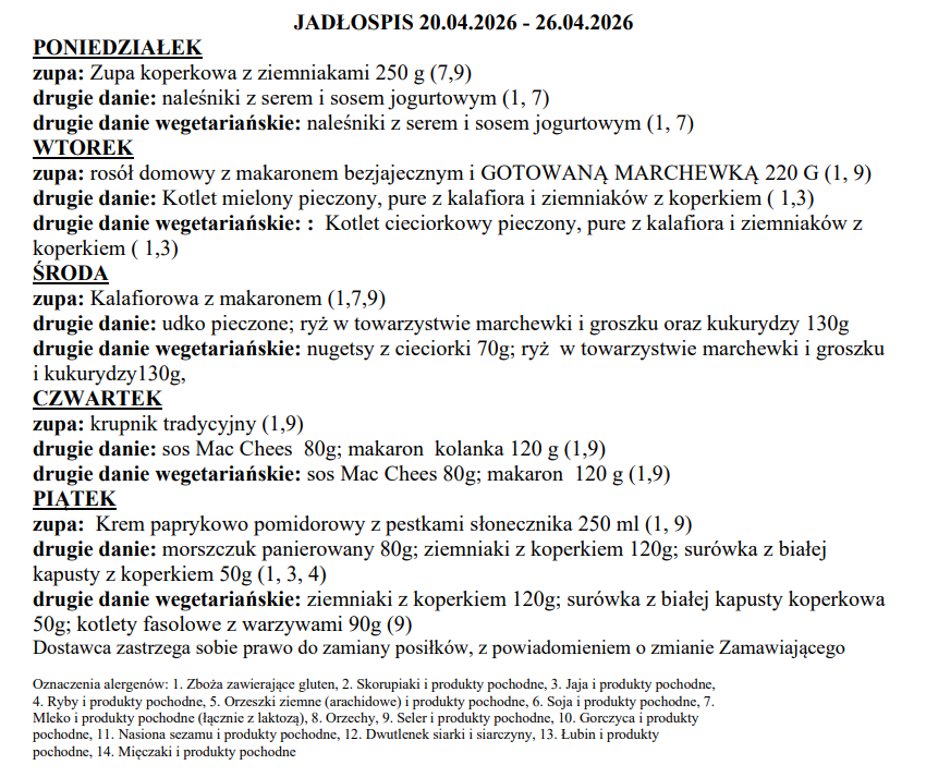 W razie nieobecności dziecka w szkole w dniu, kiedy obiad został opłacony, prosimy o niezwłoczne powiadomienie sekretariatu szkoły - nie później niż do godziny 8:00.