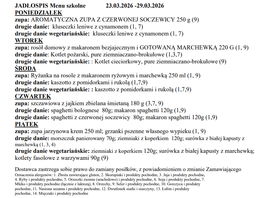 Jadłospis 23.03 - 27.03.2026