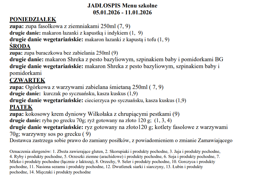 Jadłospis 5.01 - 9.01.2026