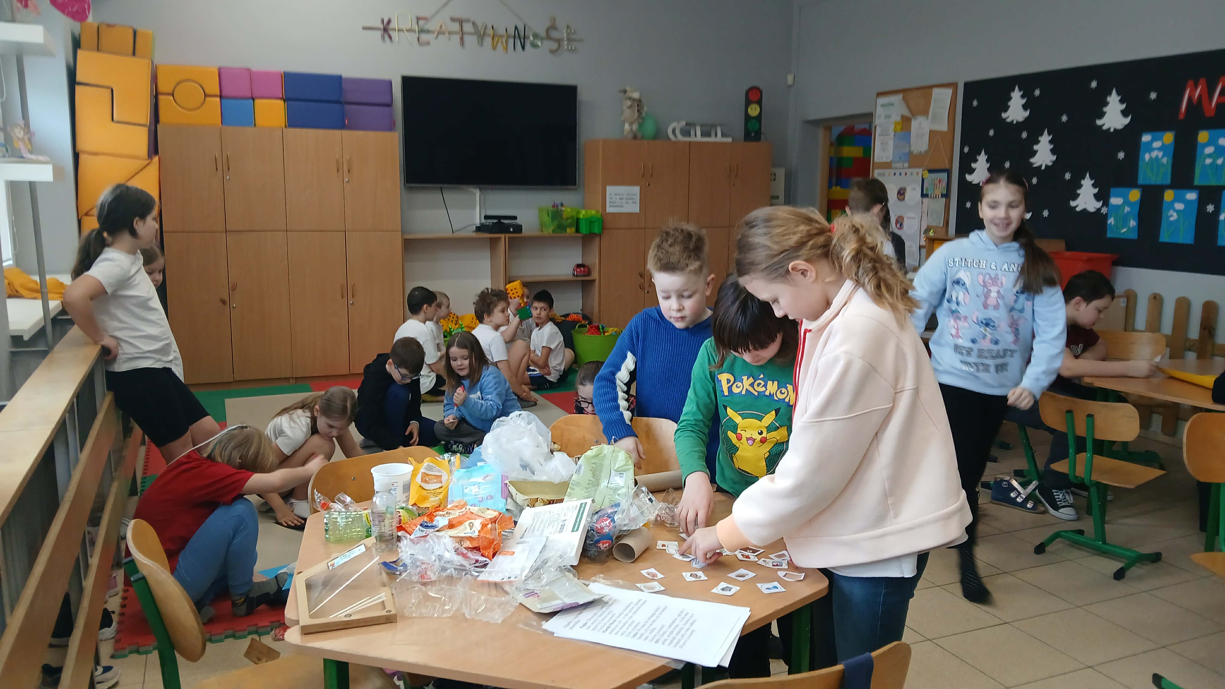 Podczas warsztatów ekologicznych szkolny eko-komitet utrwalał zasady prawidłowej segregacji odpadów. Dzieci uczyły się rozpoznawać rodzaje śmieci, dopasowywać je do odpowiednich pojemników oraz rozumiały, dlaczego właściwa segregacja ma znaczenie dla ochrony środowiska. Zajęcia miały formę praktyczną, dzięki czemu uczniowie mogli samodzielnie ćwiczyć i utrwalać dobre nawyki.