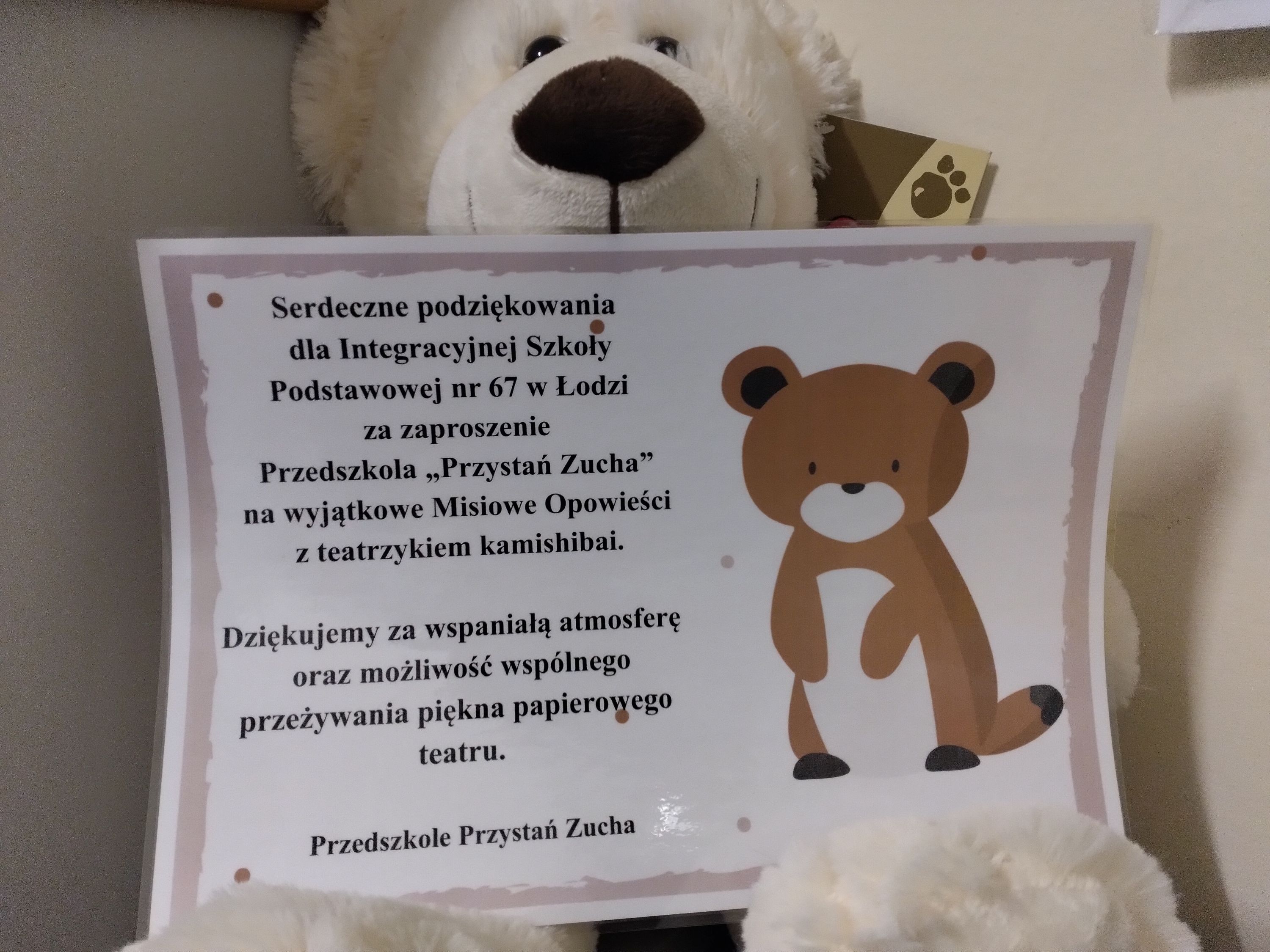 25 listopada na misiowe zajęcia czytelnicze biblioteka szkolna zaprosiła przedszkolaki z pobliskiego przedszkola Przystań Zucha. Najmłodsi wysłuchali opowieści o zwyczajach niedźwiedzi brunatnych zamieszkujących południowe lasy Polski, a następnie wykonali misiowe wianki. Przedszkolakom w pracach plastycznych pomagali uczniowie klasy III b.