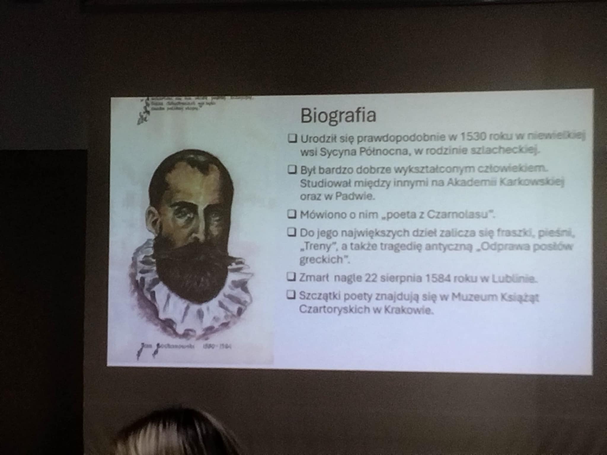Projekt „Pisarz miesiąca” to inicjatywa, która ma na celu popularyzację czytelnictwa i odkrywanie nieznanych dotąd twórców i ich dzieł. We wrześniu społeczność szkolna uczestniczyła w krótkim apelu poświęconym życiu i twórczości Jana Kochanowskiego.