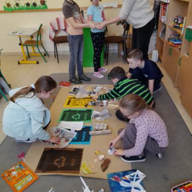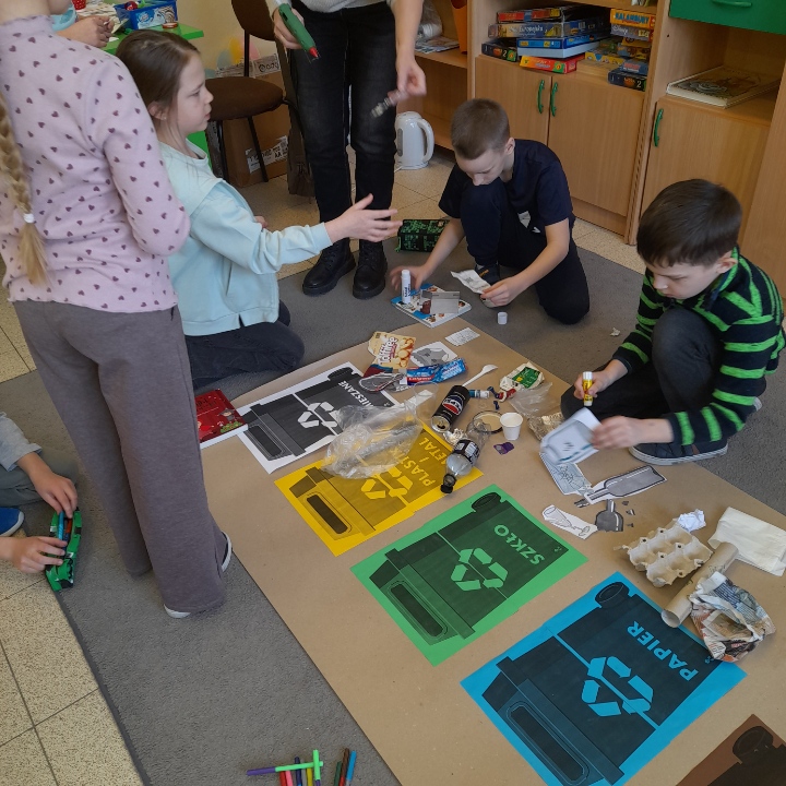 Na lekcji omawialiśmy temat segregacji śmieci. Przypomnieliśmy sobie kolory pojemników oraz zasady dotyczące tego, jakie odpady należy wyrzucić do odpowiednich koszy. Rozmawialiśmy również o znaczeniu recyklingu dla ochrony środowiska, oszczędzaniu surowców naturalnych oraz ograniczeniu ilościach odpadów trafiających na wysypiska. Uczniowie poznali przykłady materiałów, które można ponownie przez to tworzyć oraz dowiedzieli się jak codzienny nawyki wpływają na stan naszej planety. Na zakończenie uczniowie wykonali plakat dotyczący prawidłowej segregacji odpadów.