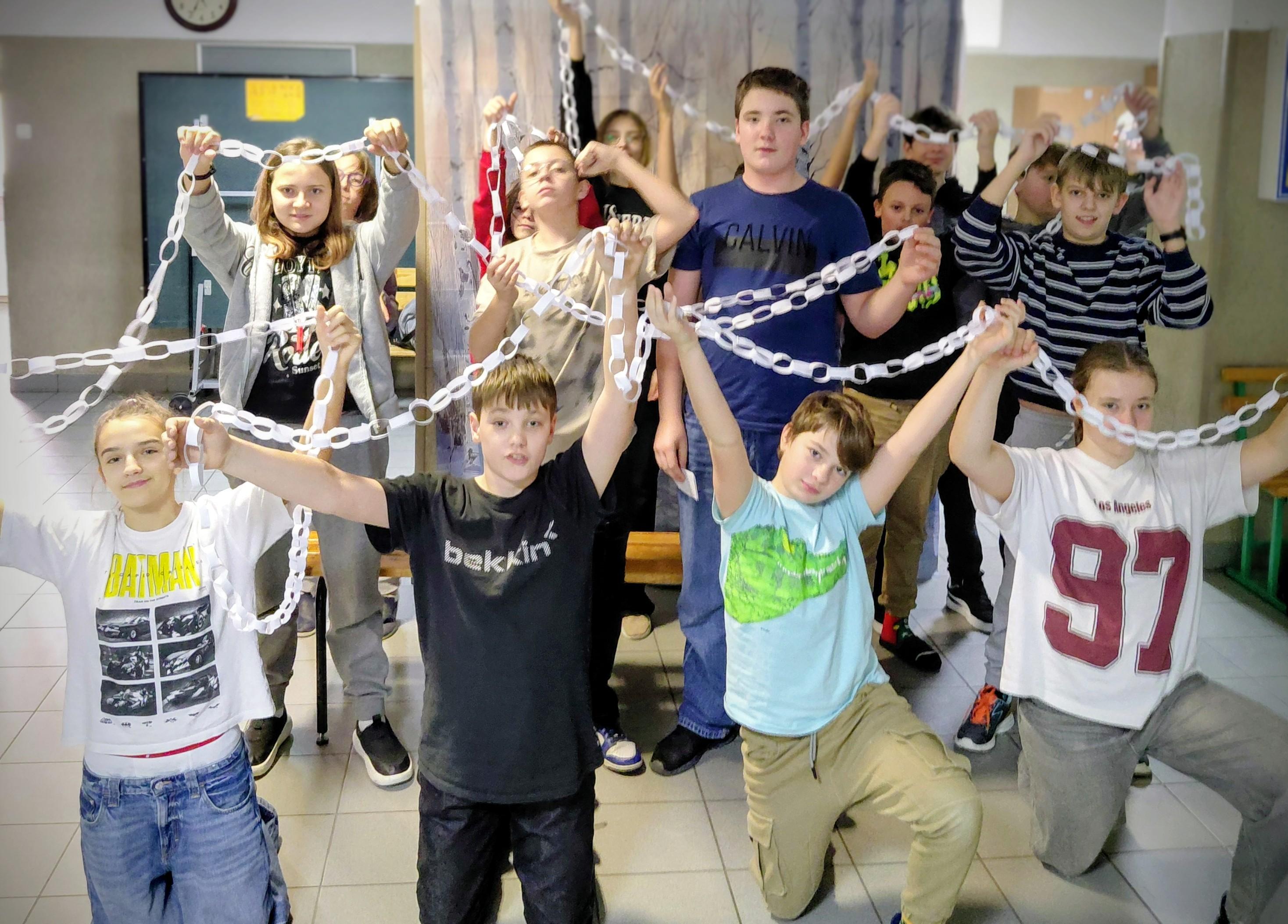 Uczniowie klasy 6 B stworzyli wyjątkowo długi łańcuch z papieru oraz rożnego rodzaju gwiazdki i inne prace pod opieką M. Adamczyk oraz K. Piotrowskiej.