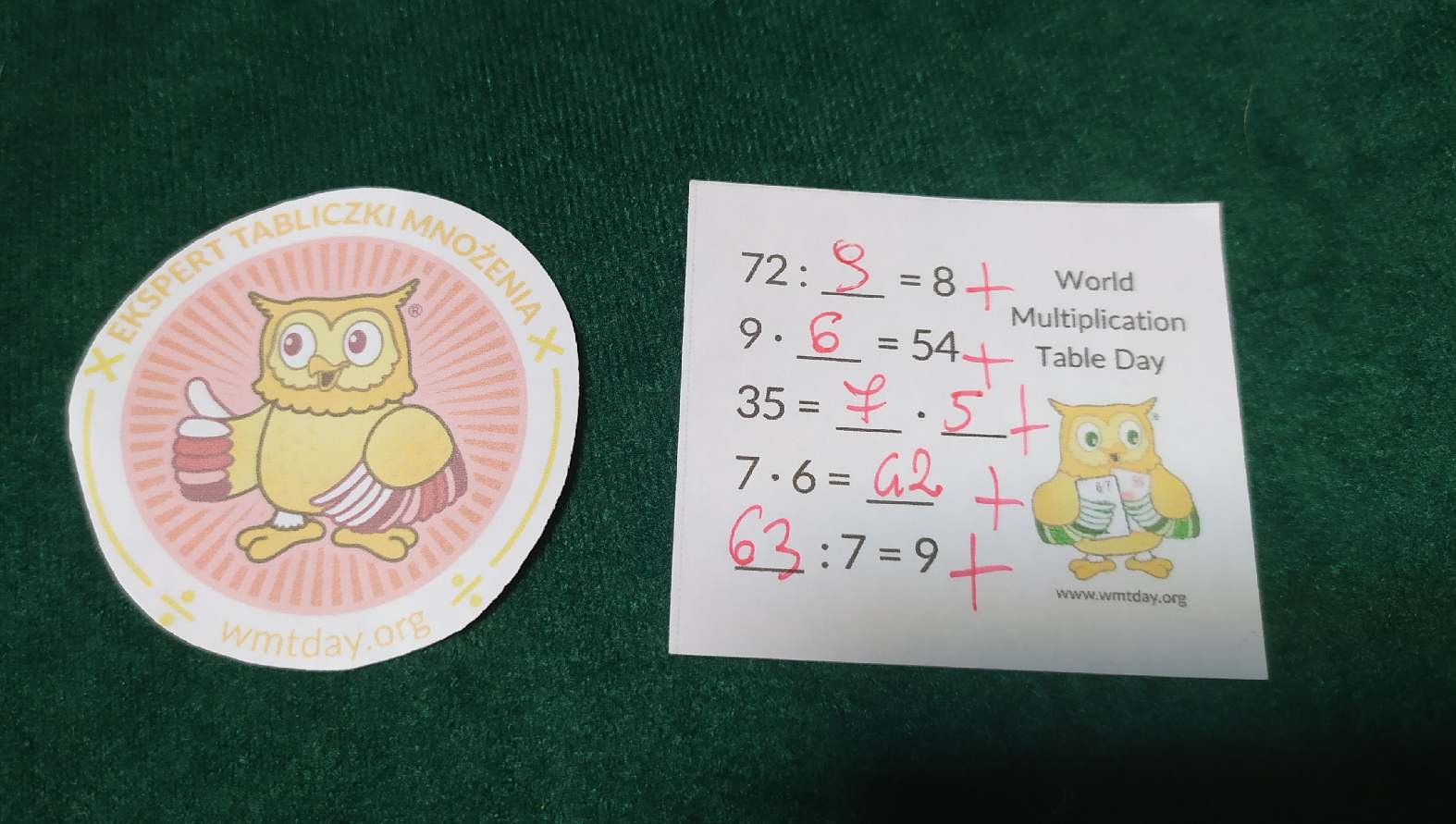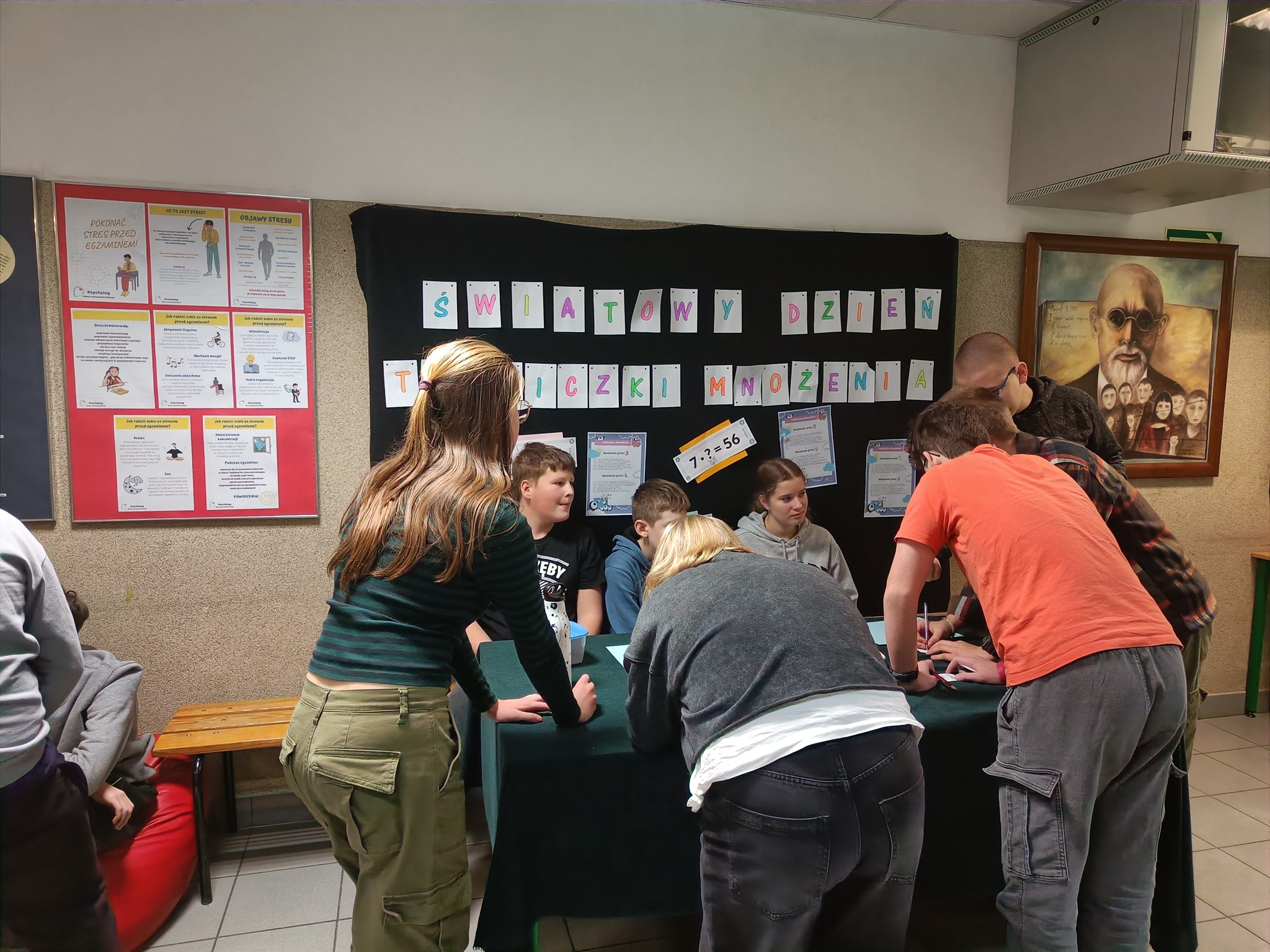 21 listopada 2025 obchodziliśmy Światowy Dzień Tabliczki Mnożenia. To jednodniowe święto matematyki jest dniem symbolicznym, który obchodzony jest w Polsce po raz piętnasty. Jest to akcja edukacyjna, która ma na celu zachęcić wszystkich do przypomnienia sobie tabliczki mnożenia. Z tej okazji uczniowie klasy 8a i 8b wcielili się w rolę egzaminatorów i sprawdzali znajomość tabliczki mnożenia wśród uczniów i nauczycieli naszej szkoły. Każdy uczestnik zabawy, który odpowiedział poprawnie na pięć losowych pytań z tabliczki mnożenia otrzymał odznakę Eksperta Tabliczki Mnożenia. Z przyjemnością informujemy, że niektórym uczniom udało się kilkukrotnie zdobyć odznakę.