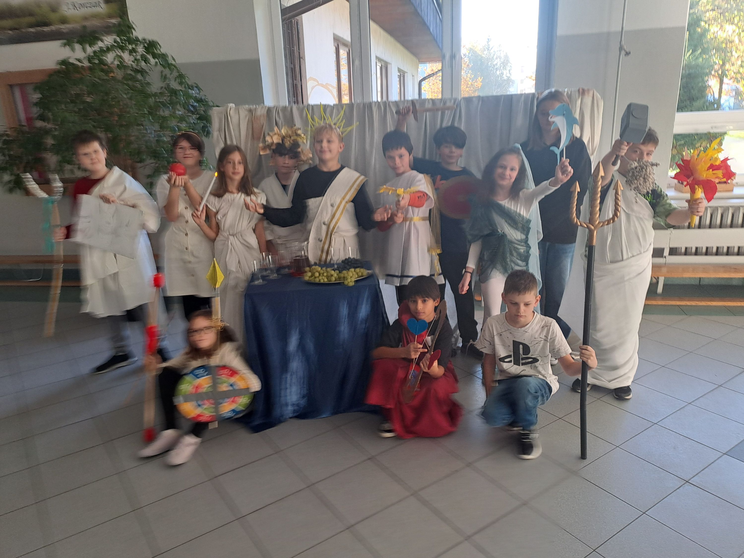 Uczniowie klasy 5b i 5c na jednej z lekcji j. polskiego wcielili się w role bogów olimpijskich. Ten nieszablonowy sposób poznania mitologii sprawił wszystkim wiele radości i udowodnił, że nauka wcale nie musi być nudna.
