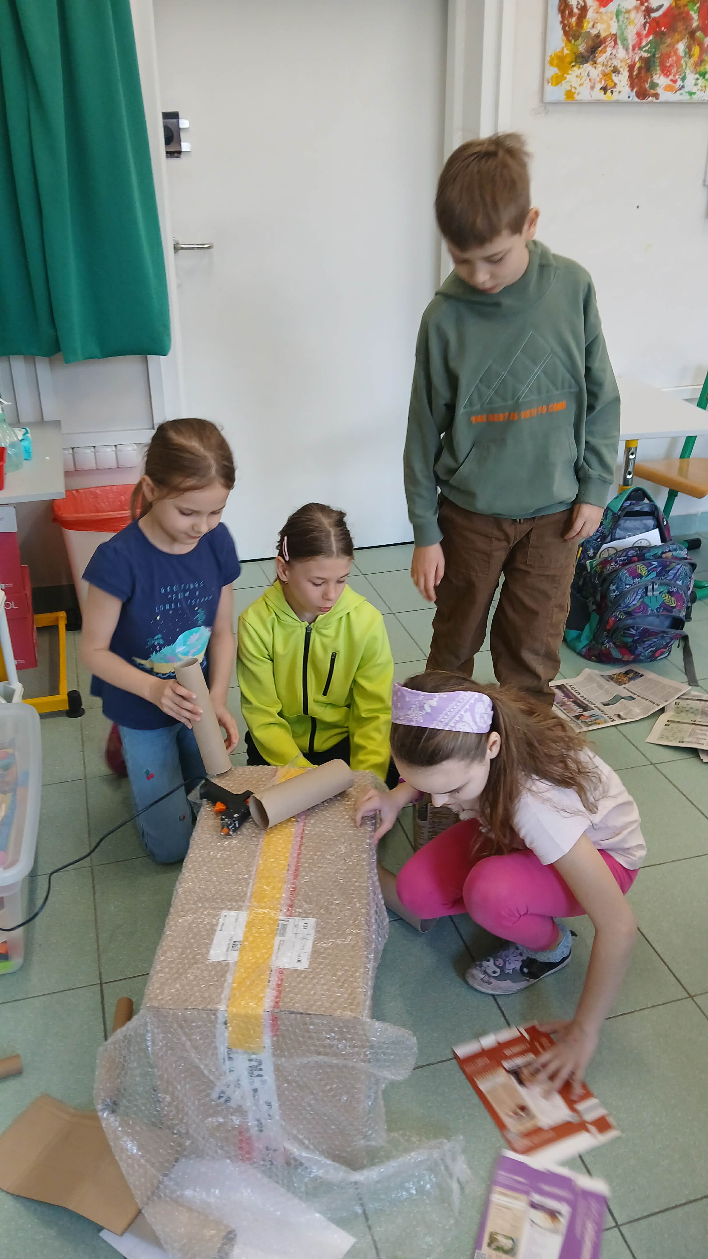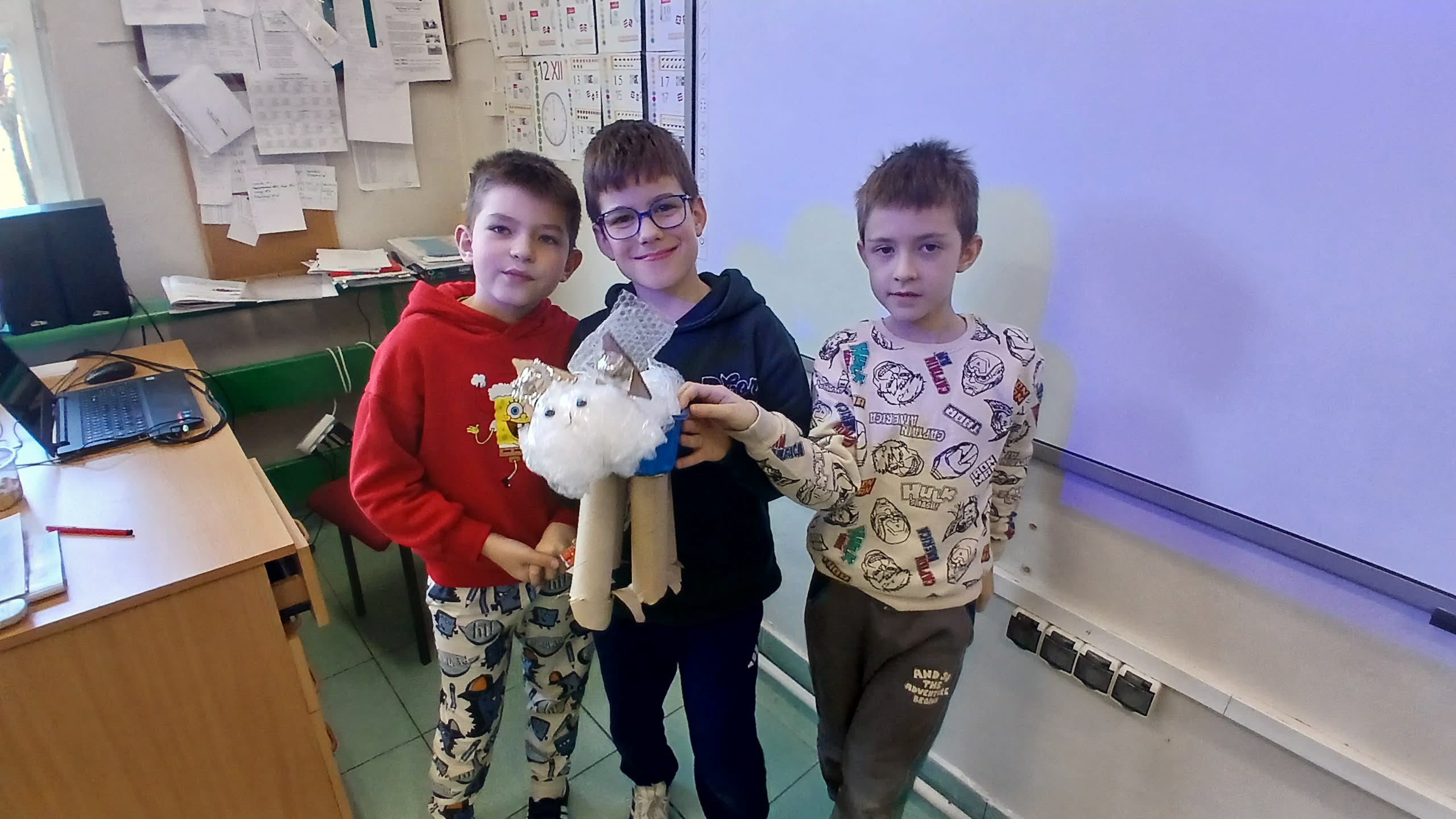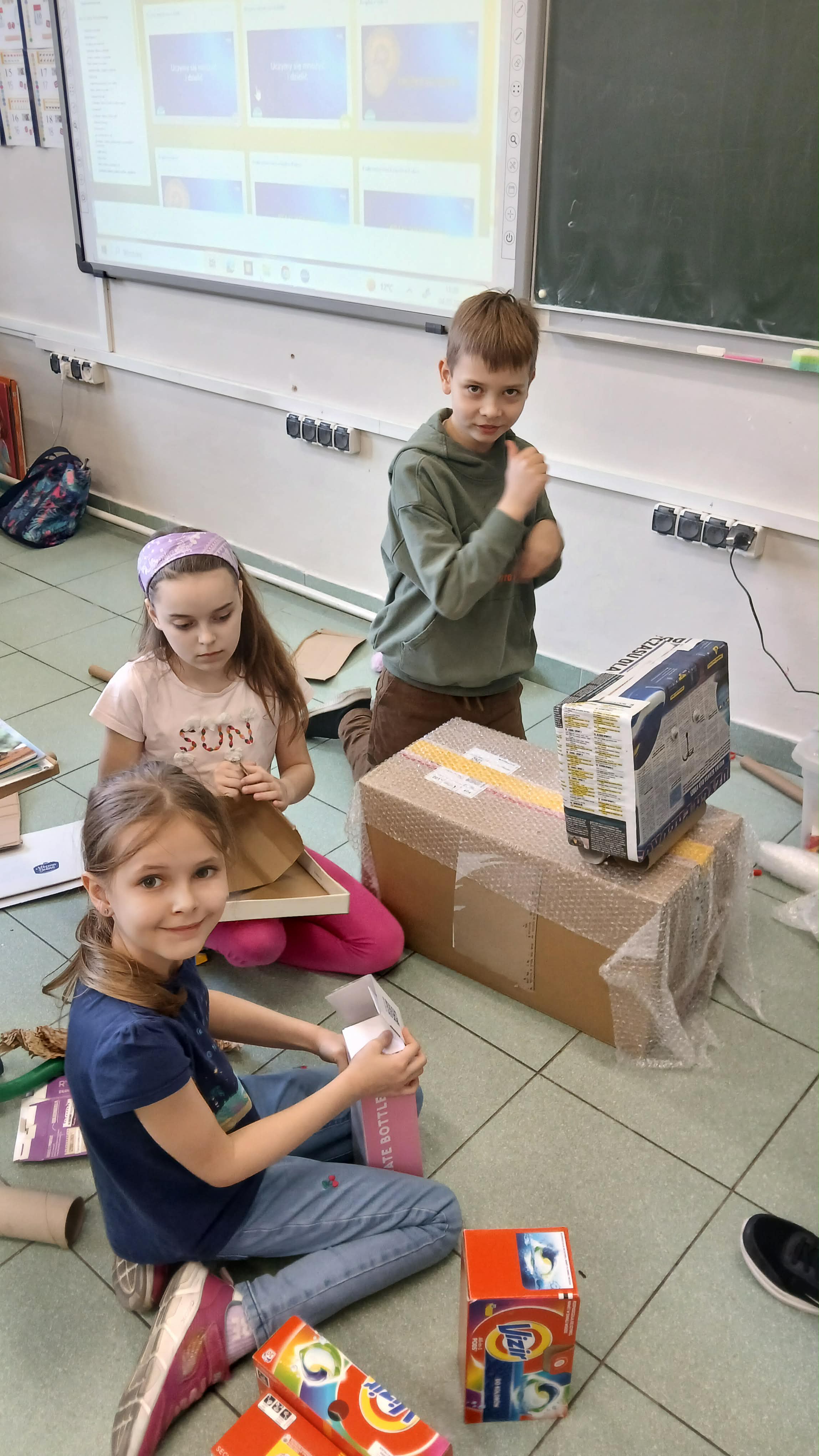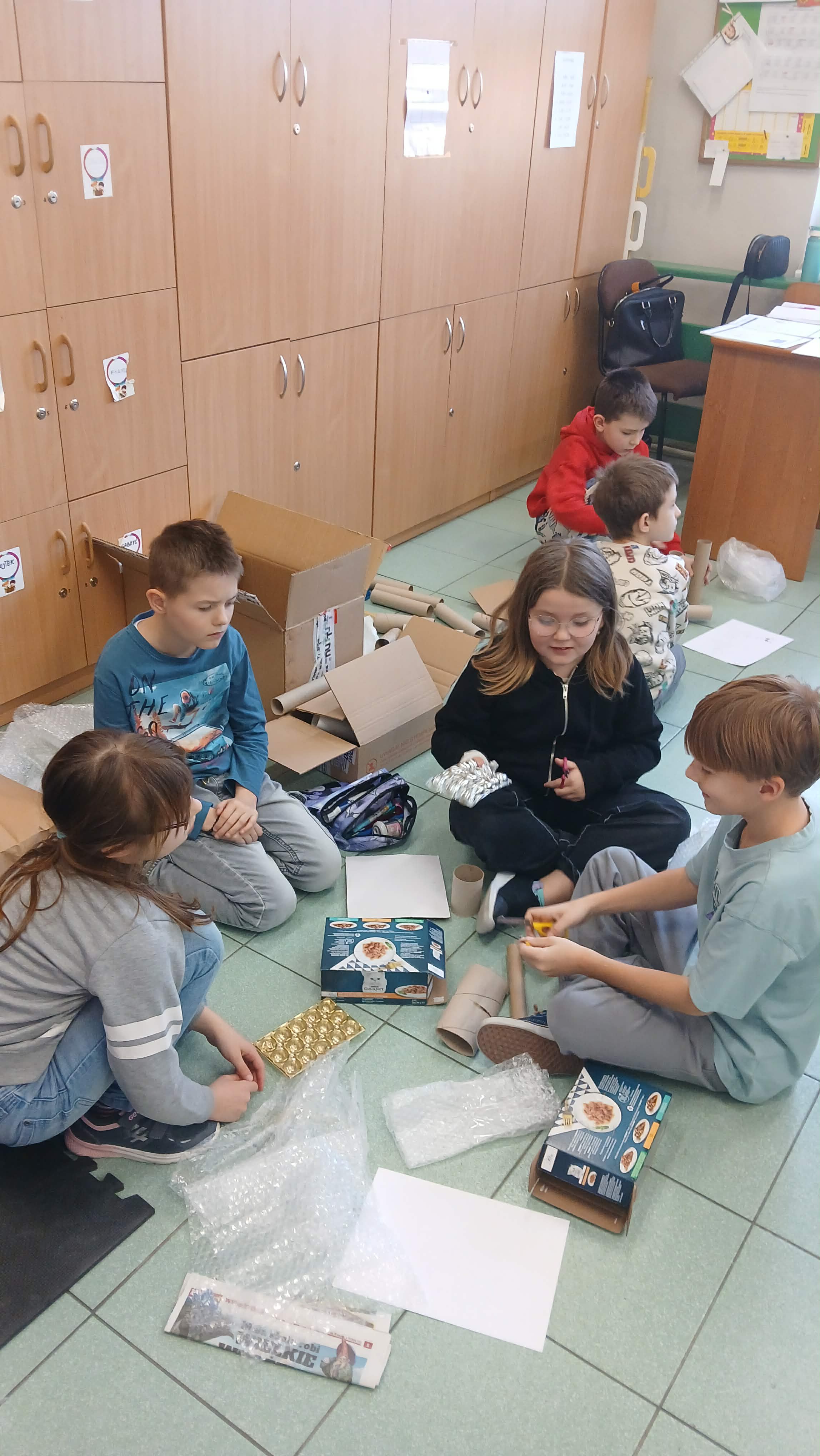 Uczniowie klasy II b wzięli udział w kreatywnych zajęciach ekologicznych, podczas których tworzyli zabawki z tzw. eko-śmieci. Wykorzystali różne materiały przeznaczone do recyklingu, takie jak plastikowe butelki, kartony, rolki po papierze czy nakrętki. Dzięki swojej wyobraźni dzieci stworzyły ciekawe i kolorowe zabawki, pokazując, że wiele odpadów można ponownie wykorzystać.